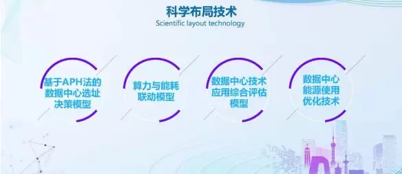 科学布局技术。针对数据中心统筹布局、节能技术合理应用以及绿色能源使用优化的需求,为算力网络设施节能降碳与数据中心科学布局提供有效支撑。 其中“基于APH法的数据中心选址决策模型”已在国家发改委2020数字经济重大课题《全国一体化大数据中心算力基础设施规划配置策略研究》和2021年中国建设银行新建数据中心选址规划中应用,获得委托方一致好评。