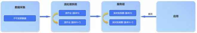 在 Kappa 架构中,输入数据在源端采集后通常存储在 Kafka 中,在流处理程序需要升级迭代时,会启动一个新版本作业(StreamJob_Version_N+1), 该作业会从 Kafka 中读取所有历史数据和新增数据,直到追上旧版本作业(StreamJob_Version_N),旧的作业版本才可以停掉。Kappa 架构通过这种方法升级流处理程序。