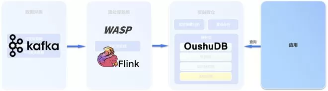 流处理系统 WASP 既可以实现实时连续的流处理,也可以实现 Kappa 架构中的批流一体,但与Kappa 架构不同的是,OushuDB 实时数仓存储来自数据源的全部历史数据(详见下图),而在 Kappa 架构中源端采集后通常存储在 Kafka 中。