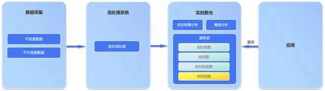 Kappa 架构在 Lambda 架构的基础上移除了批处理层,利用流计算的分布式特征,加大流数据的时间窗口,统一批处理和流处理,处理后的数据可以直接给到业务层使用。因为在 Kappa 架构下,作业处理的是所有历史数据和当前数据,其产生的结果我们称之为实时批视图(Realtime_Batch_View)。