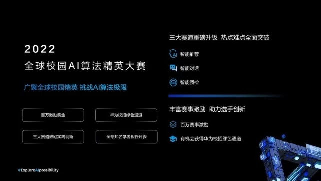 2022年6月24日,鸿蒙开发者大赛正式开启报名,其下设Apps UP应用创新赛道自2020年以来已连续举办两届,吸引了全球近万名开发者提交近万款创新应用,逐渐成为全球开发者实现梦想的沃土,本次赛事以“Together We Innovate”为主题,将延续以往两届赛事高额奖金制度,激励奖金高达100万美元。全球校园AI算法精英赛道同步开启,邀请全球校园算法达人共同挑战数字时代前沿命题。