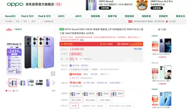 OPPO Reno8系列在性能、影像等方面展现出强大实力,喜欢拍照摄影的消费者不容错过,而新推出的“鸢尾紫”也为消费者提供了更多选择,更有欧珑香水盲盒限量开售,想要入手的你,即刻上京东下单吧。