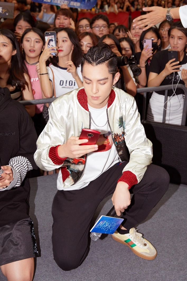见面会上,王鹤棣一改剧中“菠萝头”的造型,梳着小辫子帅气可又叛逆,红色领口外套配上黑色长裤,“浆果红”的美图T9也是不离手,为与粉丝合影做着准备,惹来粉丝大呼果然是“认真的男人最帅气”!