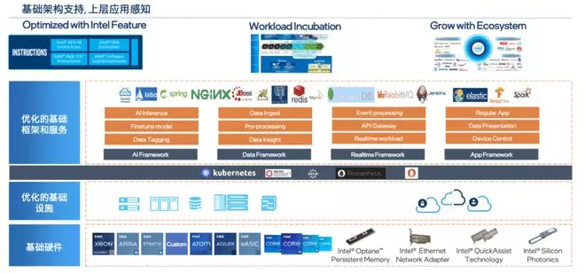 可以看到,基础设施层主要包括硬件、配套云服务、云原生中间件以及各类开源基础软件。而在工作负载层面,是大量的软件工作,包括核心的框架、SDK 以及开源软件贡献(UpStream)。这也是为什么英特尔以硬件闻名,却维持着超过一万人的软件研发团队。
