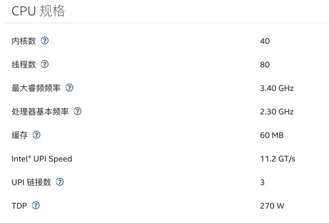 在 CPU 方面,英特尔已更新至强® 第三代可扩展处理器,相比第二代内存带宽提升 1.60 倍,内存容量提升 2.66 倍,采用 PCIe Gen 4,PCI Express 通道数量至多增加 1.33 倍。其中,英特尔® 至强® Platinum 8380 处理器可以达到 8 通道、 40 个内核,主频 2.30 GHz,英特尔支持冬奥会转播 8k 转播时,CPU 侧的主要方案即是 Platinum 8380。这里贴一张详细参数列表供你参考: