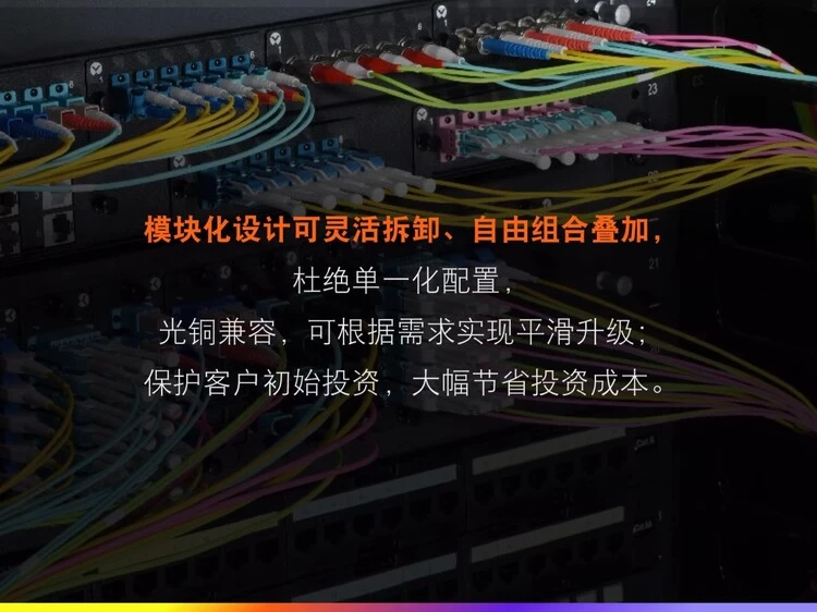 其独特的核心价值——“光铜融合,品质联接”,创新实现光铜兼容,同一配线架既可接入光纤亦可接入铜缆,让客户在实际使用中自由搭配,空间利用率大幅提升,未来扩容更方便,并以高品质充分保障数据连接的安全稳定!四大维度,呈现多重价值: