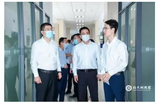 活动伊始,宝山区领导、区科委及高境镇领导和企业代表一同参观园区,并针对园区载体建设、科技成果转化、企业孵化情况、创新资源集成、创新人才引育等方面进行深度交流。随后,北大科技园总裁陈庚在线向到场嘉宾、合作伙伴表达了欢迎和衷心感谢。