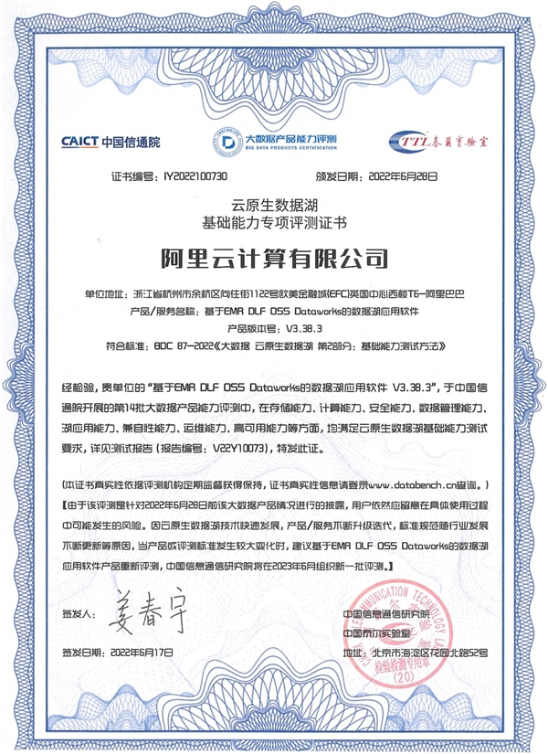 国内首批!阿里云云原生数据湖产品通过信通院评测认证