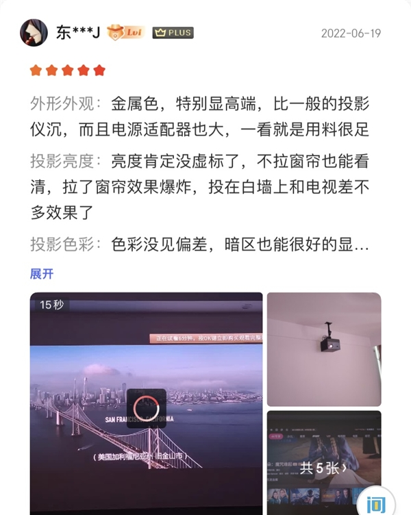 也有用户表示对于机身的外观质感非常满意,摆在客厅非常有档次感,画质方面,即便打开窗帘,效果也非常不错,关闭窗帘之后效果极佳,并且色彩还原度高,没有任何偏差。