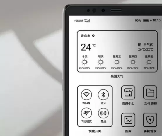 在阅读体验上,海信阅读手机A9基于安卓11开放系统,针对阅读场景进行了UI重构,推出了全新的Ink OS系统,将基础易用性和设计艺术性提升到了一个新的高度,带来了墨水屏“轻”设计。全新形态的桌面插件,用户无需打开应用就能享受服务,插件尺寸可自行选择,随心排列,让桌面焕然一新。