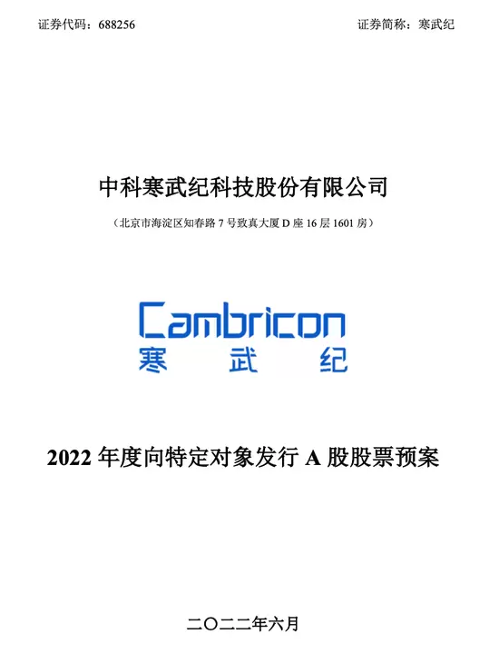 6月30日晚间,寒武纪披露定增预案,公司拟向不超过35名特定对象发行不超过8016.29万股,募集资金总额不超过26.5亿元,用于先进工艺平台芯片项目(5nm或者更新代际的工艺)、稳定工艺平台芯片项目(7nm或者更早代际的工艺)、面向新兴应用场景的通用智能处理器技术研发项目及补充流动资金。