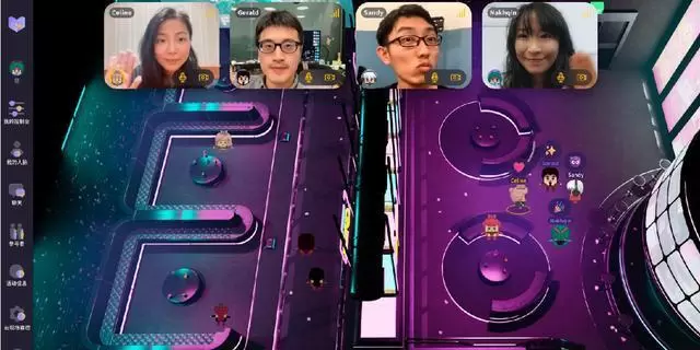 其次,这种交流方式有效缓解传统音视频会议应用带来的“乏味和疲劳”体验,让沟通交流更有效。用户以虚拟形象出现在“世界”中,一方面可以减少用户对自己实时画面的注意以及用户之间高强度视觉接触的压力;另一方面用户可以通过表情 icon,文字状态设置、角色动作反馈等完成自己的态度表达,让用户之间的信息传递更加直观和有效。