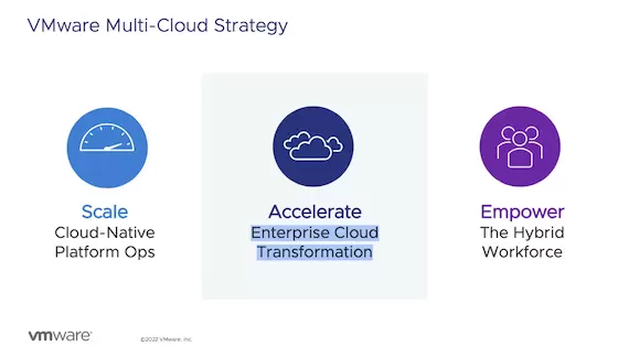 在不久前的VMware云基础架构媒体沟通会上VMware高级副总裁兼云平台事业部总经理Krish Prasad在开场便率先介绍了VMware多云战略的三大关注领域,首先是启动云原生运行平台,主要专注于开发者,助力构建和交付线上化的应用,VMware会为开发者提供最先进、最前沿的解决方案;第二是加速企业云转型,无论开发组选择哪个云平台,VMware都有一套统一的自动化支撑和运行方法,加速客户部署现代化应用进程,以及对架构的现代化改造进程;第三是为混合型工作团队提供解决方案,为大企业提供一种安全且无缝的工作环境,帮助员工实现远程办公,方便可多地接入工作。