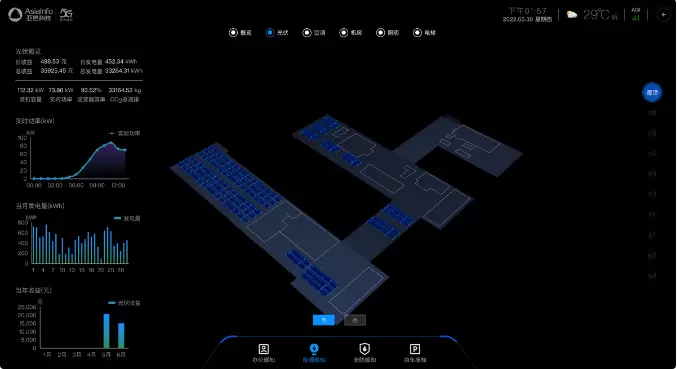 走进亚信大厦,综合能源智慧管控平台上清晰地显示着大楼内的用电、用水和屋顶光伏发电等实时数据。这就是日前亚信科技正式投产使用的综合能源智慧管控平台,实现了部分用电的清洁替代,以及大厦用能系统的精细化管理和实时监控。