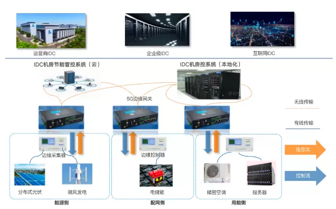 对于IDC机房场景,亚信科技携手各运营商进行IDC机房零碳绿能改造,以省为单位推进项目。在每个IDC机房及配套的库房、办公楼屋顶安装太阳能光伏为数据中心供电,利用边缘计算、5G、AI等技术将所有运行数据和设备运行状况上传至IDC机房节能管控系统云上,实现一个平台集中控制。