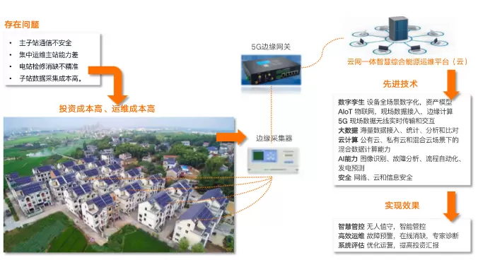 针对整县光伏场景中主子站通信不安全、集中运维主站能力差、电站检修消缺不精准、子站采集成本高等问题,亚信科技创新打造了综合智慧能源云网一体化运维共享平台,实现能源全景远程可视化和运行检修在线智能化等功能。