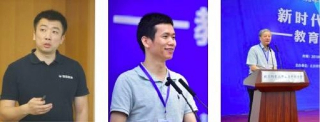 (左起)智课教育董事长兼CEO韦晓亮,好未来教育董事长张邦鑫,中国教育学会会长、北师大教育学部教授钟秉林