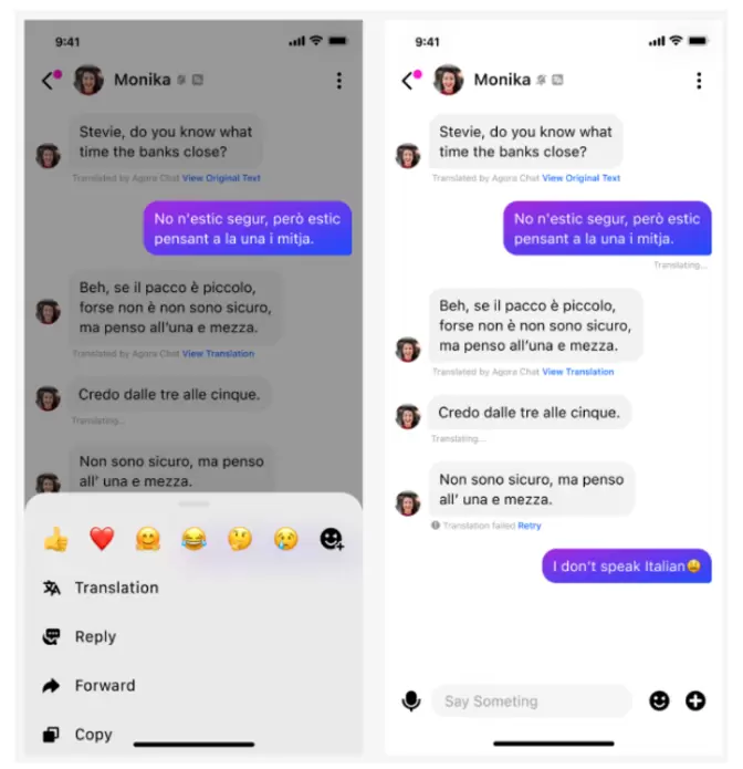1.按需翻译:收到消息时,接收方将消息内容翻译成目标语言。