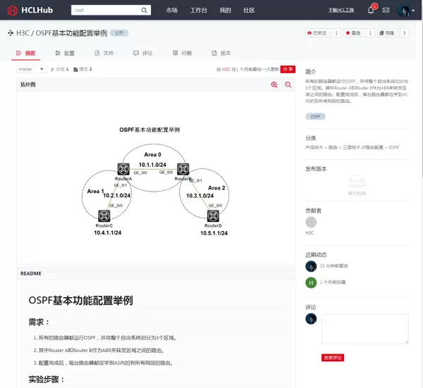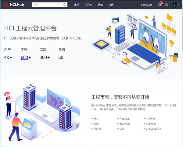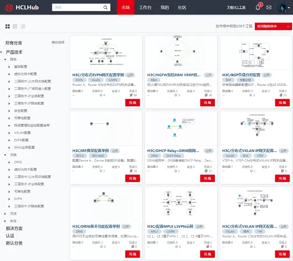 在HCL软件应用及迭代过程中,来自用户的优秀案例及工程是一笔巨大的知识财富。HCL庞大的用户数量,也需要交流沟通的通畅渠道。基于新华三在通信领域的技术积累、产品存量以及用户数量,新华三从产品维度打造了以“工程技术交流、组网拓扑共享、模拟实验学习”为本的HCLHub生态社区。