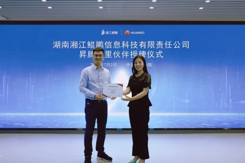 2022年7月2日,拓维信息旗下湘江鲲鹏与华为举行昇腾万里伙伴授牌仪式。为推进人工智能产业繁荣发展,加速数字化进程而携手共进。华为昇腾计算业务总裁张迪煊,拓维信息副总裁、湘江鲲鹏总裁向静代表双方完成授牌仪式。