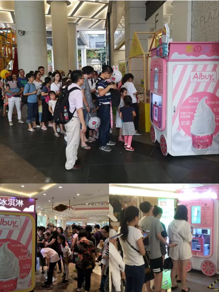 AIBUY冰淇淋机在了2017年冬天进行了小规模测试,据悉,测试的单位坪效达到传统售货机的10倍以上。