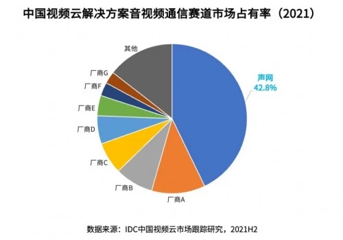 图:IDC中国视频云解决方案音视频通信赛道市场占有率(2021)