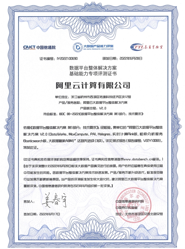 首个先进级!阿里云大数据+AI平台通过信通院数据平台整体解决方案最高等级评测