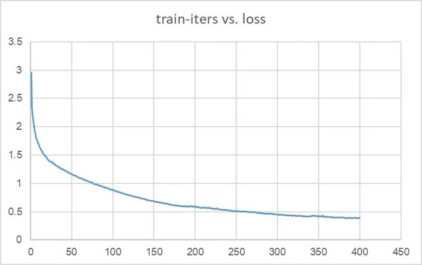 在训练了400个iteration后,模型的loss收敛至0.39(图4)。