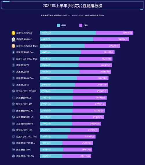 鲁大师2022上半年手机报告:vivo斩获两个冠军,天玑9000超越骁龙8!