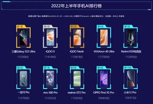 鲁大师2022上半年手机报告来源于2022.01.01—2022.06.30日鲁大师数据中心数据,排行榜成绩均选取测试均值数据。