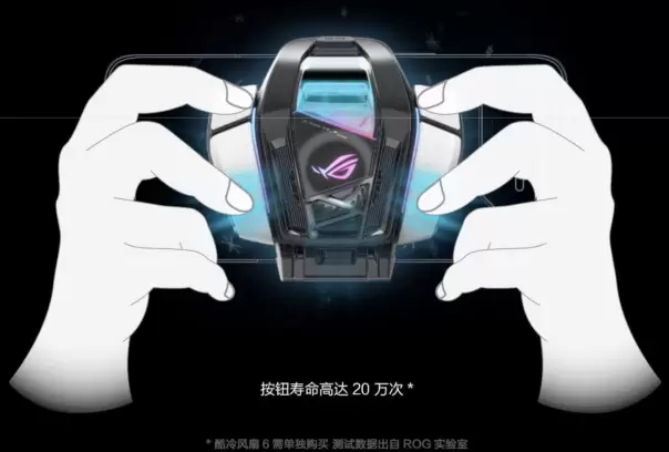 追求实体按键体验的玩家还可选择购入酷冷风扇6,除了能够为ROG6带来更强劲的散热表现外,酷冷风扇6机械按键升级为四个,让你轻松实现多指操作,按键位置及形状符合人体工学设计,握持手感更舒适。