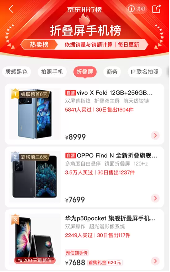 2022年Q1折叠屏手机出货量同比增长571% 入手折叠屏认准京东排行榜