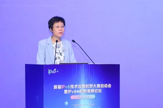 2022年7月12日上午,首届“IPv6技术应用创新大赛”在北京正式启动。工业和信息化部信息通信发展司司长谢存,中央网信办信息化发展局副局长、一级巡视员张鹏,教育部科学技术与信息化司副司长舒华等领导出席启动仪式并发表致辞,中国工程院院士邬贺铨发表主题演讲,各行业领导、专家和产业链各方代表共同见证了大赛的启动。中国信息通信研究院(以下简称“中国信通院”)副院长王志勤、中国信通院总工程师敖立主持了会议。