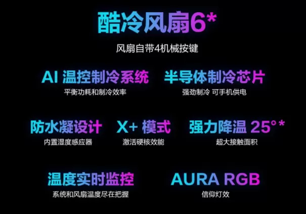 针对有着长时间游戏需求的玩家,ROG还特别推出了可以由手机供电的半导体制冷风扇——酷冷风扇6(需自行购买),其内置了半导体制冷芯片、散热片、离心风扇、温度传感器等配置,最高可降低25℃。同时酷冷风扇6还拥有AI温控制冷系统,可根据CPU温度自动调节风冷模式、酷寒模式、急冻模式三种散热方案,时刻彰显酷冷战神的超强实力!满足长时间游戏运行下的高阶散热需求,为各路大神提供冷静助力,无论是竞技上分还是开荒刷本,ROG酷冷风扇6皆可应对自如。