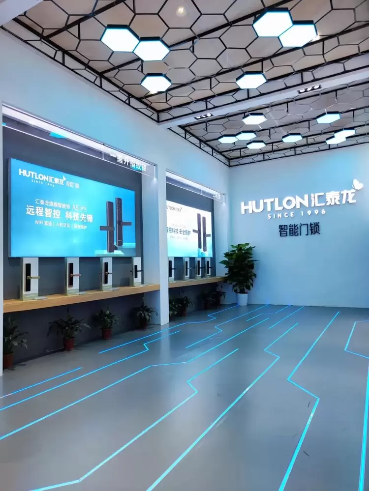 本次建博会,汇泰龙智能门锁独立开设展。汇泰龙智能门锁展馆以“云安全”为核心,采用全新形象独立出展,极简白搭配科技蓝灯光,整个展馆如云端的太空站。