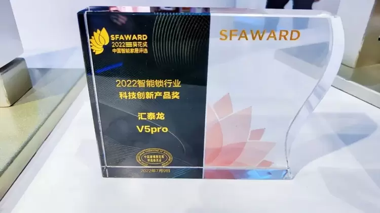 7月9日,于建博会上举办的首届中国(广州)智能家居技术大会暨 2022第六届葵花奖颁奖盛典上,汇泰龙V5pro全自动人脸识别视频对讲智能锁,荣获“2022智能锁行业科技创新奖”。奖项一经公布,不少观众慕名前往展馆体验,与汇泰龙黑科技旗舰智能门锁V5pro亲密接触。