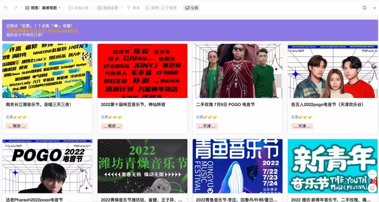 还可以用「画册视图」制作图文并茂的“小网页”。当遇到图片信息需要得到重点展示的情况,「画册视图」让图片占据主视觉的同时,其他提炼信息作为辅助描述,让用户对于活动内容一目了然。