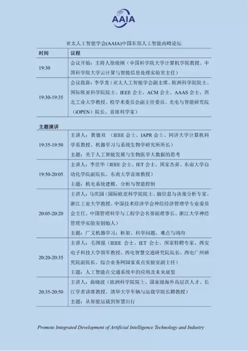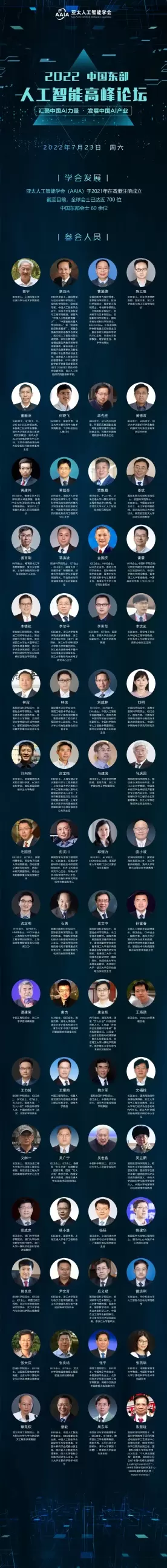本次“2022第一届亚太人工智能学会中国东部高峰论坛”将有多位人工智能领域院士和会士发表专题演讲,涉及领域包括大数据、分析与智能控制、机器学习、智慧交通、跨模态学习、情感AI等。