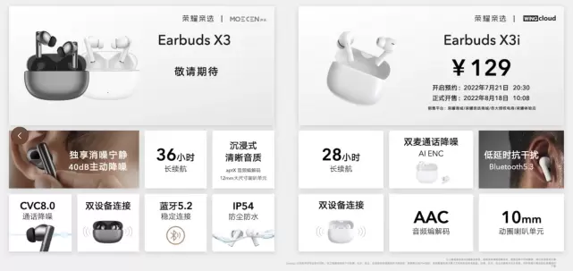 两款耳机不仅配置不俗,价格也是诚意满满。Earbuds X3i耳机的价格是129元,十分值得入手。