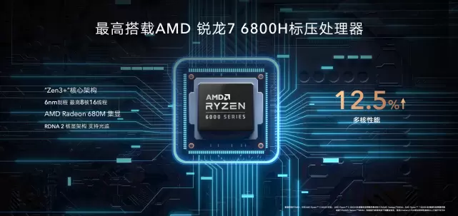 全新荣耀MagicBook 14 锐龙版是荣耀首次将OS Turbo技术应用在AMD平台的产品。这款产品全系搭载锐龙6000系列标压处理器,最高版本为AMD 锐龙 7 6800H标压处理器,采用“Zen 3+”核心架构,6nm制程和最高8核16线程,多核性能提升了12.5%;最高版本搭载使用全新RDNA 2核显技术的AMD Radeon™ 680M,性能时刻在线。