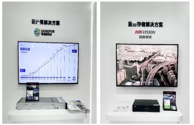 展会现场,东芝硬盘联合海康威视共同展示监控存储解决方案,以满足智慧安防下对数据存储需求,产品吸引到行业伙伴的热情参观,并与现场工作人员交流。除此之外,东芝硬盘还联合了深信服共同展示云计算解决方案,助力云计算深度发展。