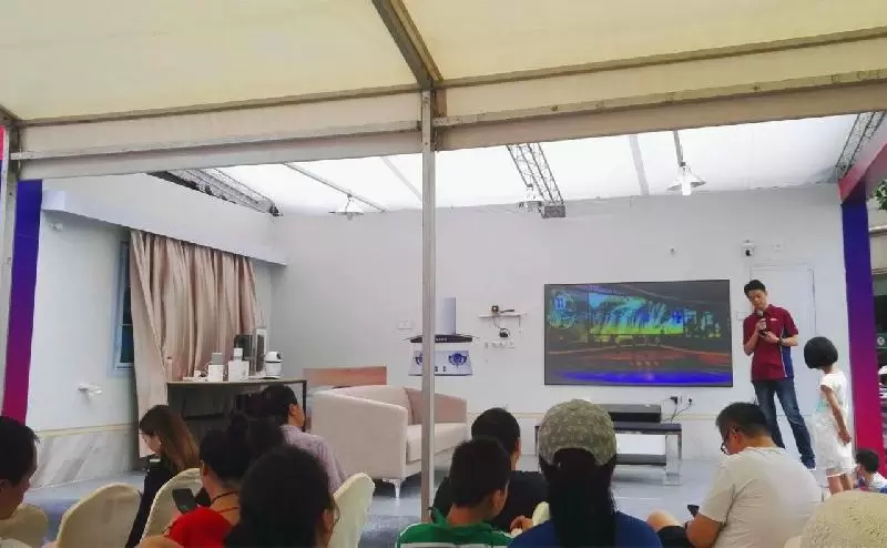 现场电信工程师展示了智能终端的各种应用:通过智能音响作为中控系统,残疾人可以通过语音控制家中的许多设备。包括电灯、电视、窗帘等等终端。