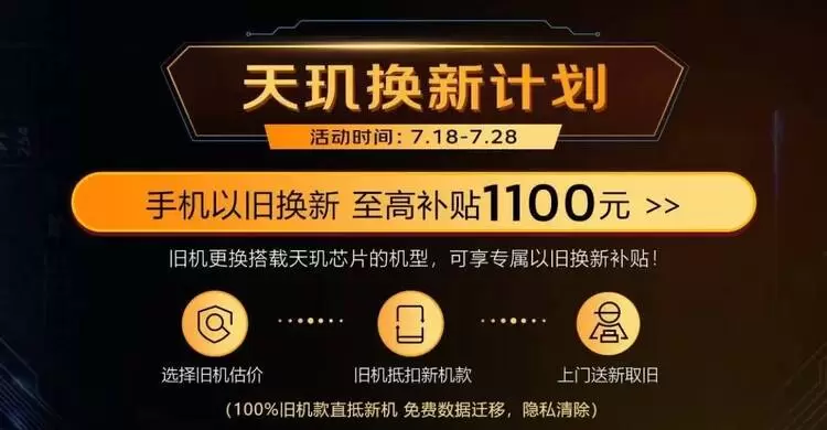 7月18日至28日期间,参与天玑换新计划,至高补贴1100元(图源天玑京东品牌日活动页面)