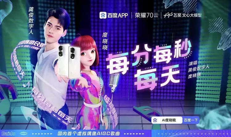 例如近期,度晓晓就联合龚俊数字人发布了国内首个虚拟偶像AIGC 单曲,全面演绎荣耀手机全新技术,帮助荣耀在618大促期间获得过亿曝光;度晓晓也成为广汽埃安元宇宙上市发布会的主持人,针对新车AION LX PLUS各项性能亮点逐一解读,成为汽车行业首个数字人营销案例。