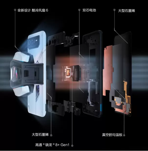 ROG6在屏幕上采用了一块三星E4 165Hz刷新率显示屏,拥有720Hz触控采样率、在《金铲铲之战》《跑跑卡丁车》《王牌战士》等游戏中可实现最高165FPS的帧数显示。机身侧边及ROG酷冷风扇6实体按键组成的AirTriggers 6操控系统,可实现至多十指触控,在FPS、MOBA、ARPG类游戏中,可轻松打出职业选手的“六指操作”。此外,容量为6000mAh的双芯电池,可提供更为持久的续航时间,即使是外出开黑,游玩一整天后仍有电量冗余。