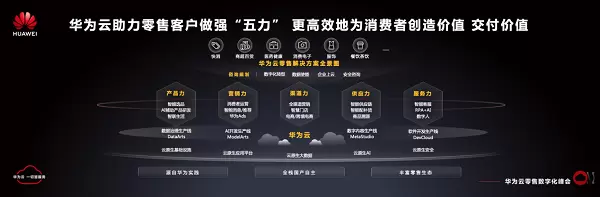 “华为把自身的数字化转型实践经验总结成数字化转型咨询服务对外输出,帮助其他企业加速进行数字化转型落地。”潘捷表示,在零售行业,华为云打造零售解决方案,助力零售客户做强“五力”,包括产品力、营销力、渠道力、供应力和服务力,更高效地为消费者创造价值、交付价值。