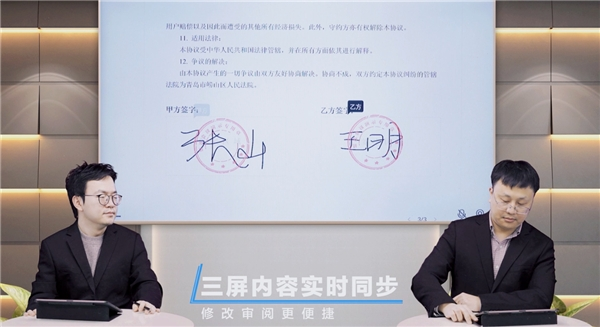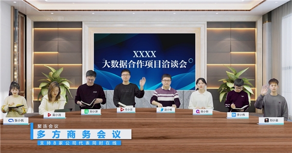 目前,聚连会议不断迭代优化,“线上发布会”模式,可以将演讲者叠加于共享画面中,一键打造线上发布会模式,让远程会议不再单调,更具临场感;“远程签约”功能让无法齐聚一堂的甲方和乙方,可以在线上举行一场“签约仪式”,实时进行合同签约、盖章、合影,成就签约仪式感;“家庭聚会”将相隔千里的亲朋好友“聚”在同一张桌子旁,让不能团圆的亲人在AR沉浸式场景中感受亲情的温暖。