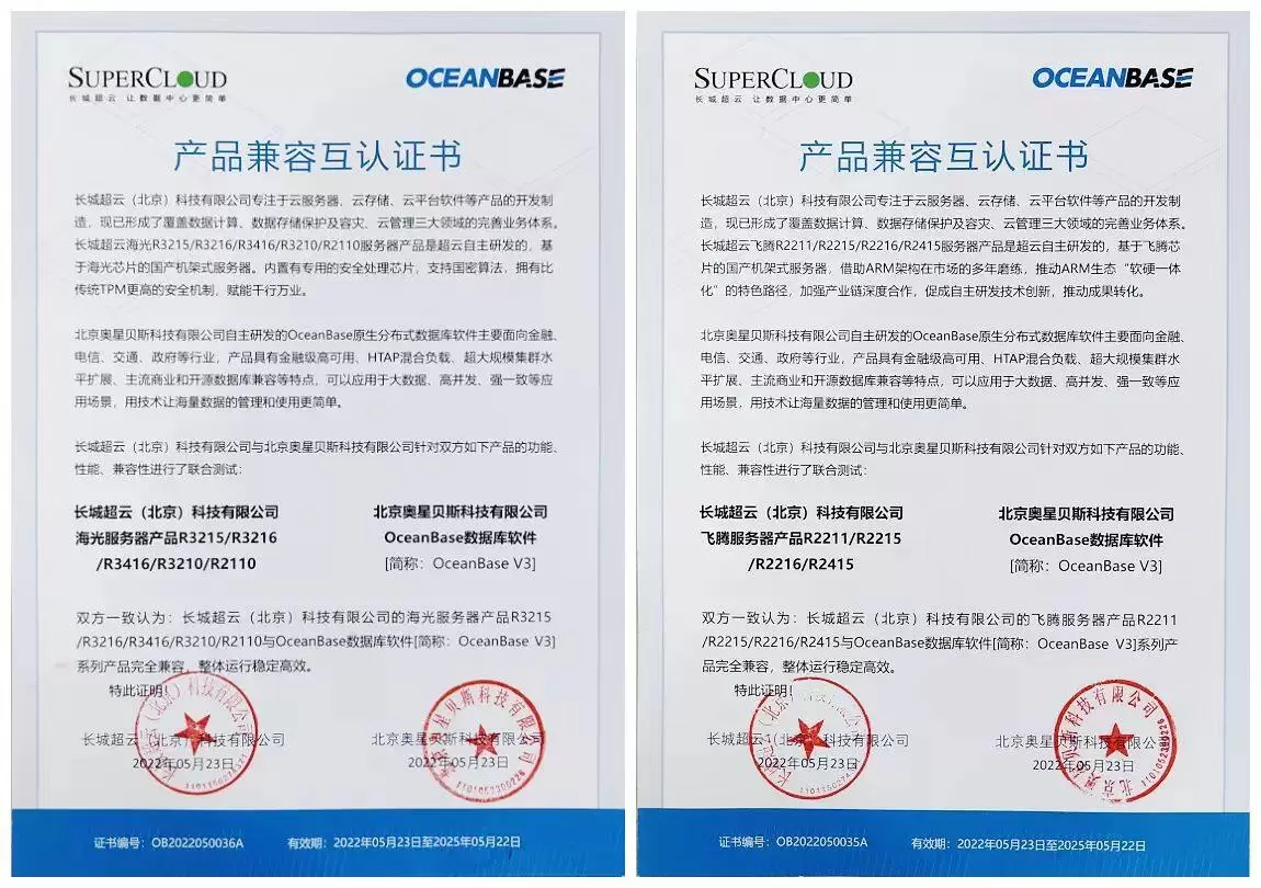 近期,超云在信创生态领域持续发力,送配的海光平台服务器R3216/R3416/R3215/R3210、飞腾平台服务器R2211/R2215/R2216/R2415等全系列产品分别与阿里 OceanBase V3数据库软件、腾讯云分布式数据库TDSQL管理系统、数据库管理DB brain软件完成了计算、网络等几十项严密的测试。结果显示适配性能优异,整体性能安全可靠。