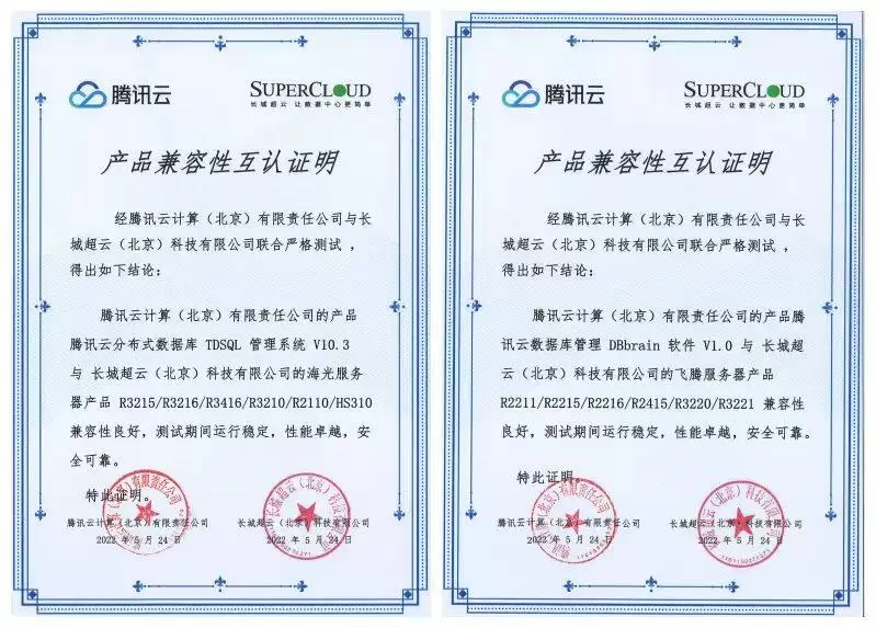 超云信创产品与阿里、腾讯的数据库云平台完全兼容,并迅速拿到了兼容互认证证书(见下图),再次丰富和壮大了超云的信创生态体系家族。