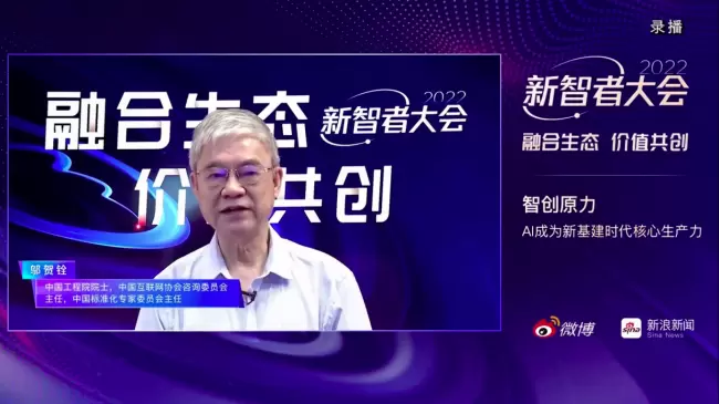 7月27日,由中国互联网协会指导,微博、新浪新闻主办的人工智能领域行业峰会——2022新智者大会召开。此次大会以“融合生态 价值共创”为主题,围绕当下数字化转型应用及热点、智能技术发展趋势、智能互联的生态合作共建等话题进行分享交流。在大会“智创原力:AI成为新基建时代核心生产力”的议题中,中国工程院院士、中国互联网协会咨询委员会主任、中国标准化专家委员会主任邬贺铨院士发表了题为《AI聚能 数字设施赋能数字转型》的主旨演讲。